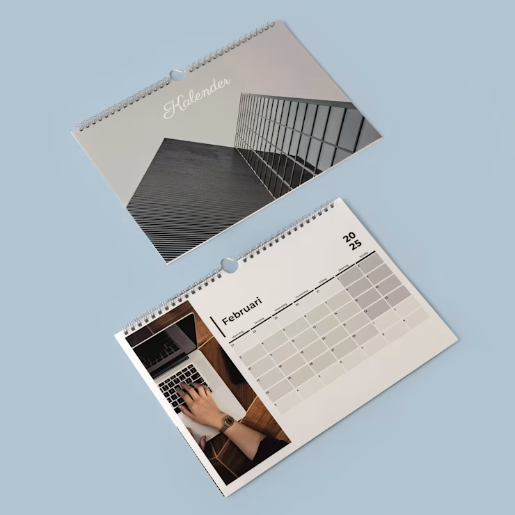 Laat jouw kalenders maken met logo, foto of eigen ontwerp en geef een praktische én stijlvolle reclamedrager cadeau. Groot, klein, enkel- of dubbelzijdig bedrukt. Onze kalenders drukken we op verschillende papiersoorten: van glanzend houtvrij gesatineerd mc voor fotokalenders tot mat mc of houtvrij offset voor een natuurlijke uitstraling. Liever duurzaam? Kies voor Bio Top 3 of gerecycled papier. Maak het af met een glans- of matlaminaat voor extra bescherming en een luxe look.