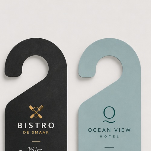 Zorg dat je informatie duidelijk, stijlvol en meteen zichtbaar is voor je gasten. Bestel vandaag nog jouw deurhangers en combineer functionaliteit met opvallende branding!